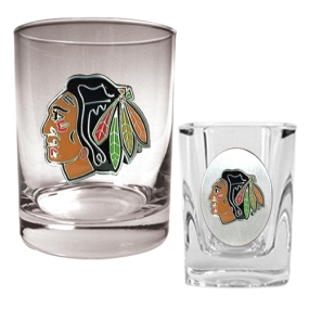 Chicago Blackhawks Rocks Glass & Square Shot Glass Set