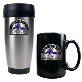 Colorado Rockies Stainless Steel Travel Mug & Black Ceramic Mug Set