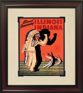 Classic cover artwork from historic game day football programs has been carefully restored and presented in this new line of collectibles. The 1923 Illinois vs. Chicago Historic Football Program Cover is mounted in a stylish beveled mat, covered in glass and finished with a beautiful, 16" x 20" mahogany frame. This nostalgic cover is the perfect piece to add to any fan's collection.