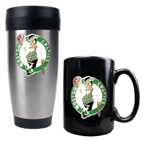 Boston Celtics Stainless Steel Travel Mug & Black Ceramic Mug Set