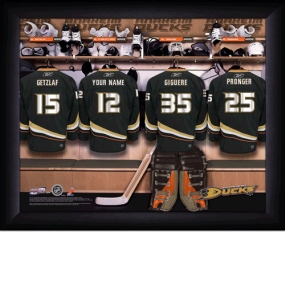 Get your name on a jersey next to the superstars with this one of a kind, 11 x 14 Anaheim Ducks Personalized Locker Room Print! The name of your choice will be digitally imposed on a jersey, and on the plaque above the jersey, in this framed photograph. Choose a name up to 12 characters long for the jersey and up to 14 characters long for the plaque. This is the perfect gift for the fan of all ages. Get your Anaheim Ducks Personalized Locker Room Print today!