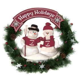 This Phoenix Coyotes Snowman Wreath is accented with pine cones, holly berries and two snowmen dressed in official team colors with an official logo. The wreath is 20" in size and is perfect for your holiday home decor, or to give as a gift to that special fan.
