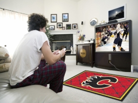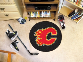 Hey hockey fans! Check out this 30" x 72" hockey rink-shaped area rug/runner. Made in the U.S.A. of nylon carpet and non-skid latex backing. Machine washable and chromojet printed in team colors. Get your Calgary Flames Rink Runner today!