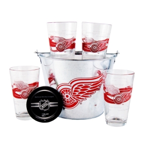 This officially licensed Detroit Red Wings Gift Bucket Set is a boxed gift set which includes a 5 quart metal bucket, 4 pint glasses and 12 coasters. Each item is decorated with your favorite team's logo and team graphics. The Detroit Red Wings Gift Bucket Set is perfect for serving drinks at parties, barbeques or while watching the big game. It's a great gift idea for that special fan!