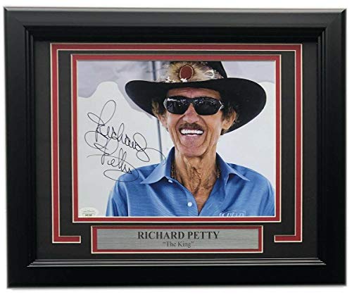Richard Petty is known to NASCAR fans as, The King and as the driver of, Ol' 43. He became a record-breaking legend over three decades of auto racing. Petty, the son of driver Lee Petty, drove his first professional race in 1958. In 1959 he was named Rookie of the Year, and over his lengthy career he won 200 NASCAR races. He also won the Daytona 500 seven times and won the Winston Cup championship seven times (a record later equalled by Dale Earnhardt). Over time Petty became a media icon, known almost as much for his cowboy hats and wraparound sunglasses as for his exploits on the track. He retired from driving in 1992, but continued in the sport as the owner of Petty Racing. After retiring, he was awarded the Medal of Freedom, the U.S.'s highest civilian award. There is no better way to commemorate your favorite player or team than this quality collectible. This collectible features: 8x10 Premium Photograph, Double Acid Free Mats, High Quality Black Wood Moulding, High Strength Premium Clear Glass, Finished Size: 12 1/4 inches by 15 1/2 inches, Individually Inspected, Bubble Wrapped for Protection, Assembled in the USA, Watermark (if shown) is not on the Finished Product.