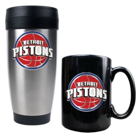 Detroit Pistons Stainless Steel Travel Mug & Black Ceramic Mug Set