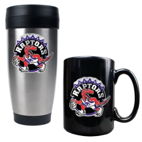 Toronto Raptors Stainless Steel Travel Mug & Black Ceramic Mug Set