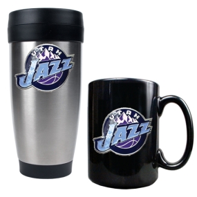 Utah Jazz Stainless Steel Travel Tumbler & Black Ceramic Mug Set