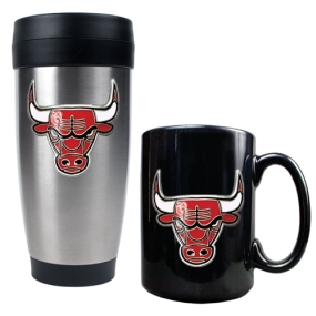 Chicago Bulls Stainless Steel Travel Mug & Black Ceramic Mug Set