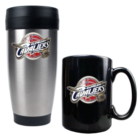 Cleveland Cavaliers Stainless Steel Travel Mug & Black Ceramic Mug Set