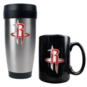 Houston Rockets Stainless Steel Travel Mug & Black Ceramic Mug Set