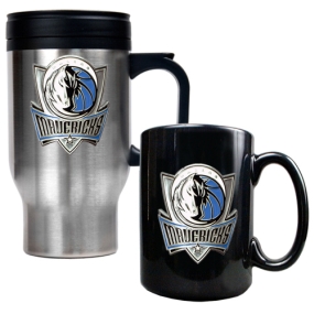 Dallas Mavericks Stainless Steel Travel Mug & Black Ceramic Mug Set