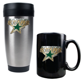 Dallas Stars Stainless Steel Travel Mug & Black Ceramic Mug Set