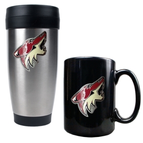 Phoenix Coyotes Stainless Steel Travel Tumbler & Black Ceramic Mug Set