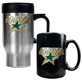 Dallas Stars Stainless Steel Travel Mug & Black Ceramic Mug Set