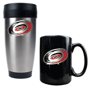 Carolina Hurricanes Stainless Steel Travel Mug & Black Ceramic Mug Set