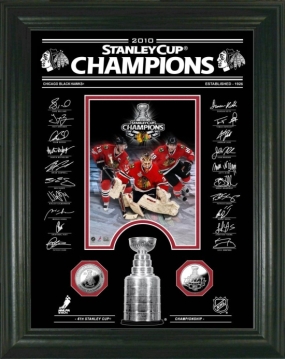 Chicago Blackhawks Stanley Cup Signature Etched Glass 24kt Gold Coin Photo Mint