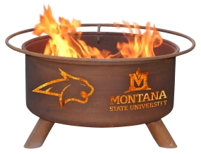 Spark up the outdoors with this one of a kind Montana State Bobcats Fire Pit. This fire pit is made from 16 gauge, cold rolled steel, with a natural rust patina finish so it will age beautifully over time. It includes a spark screen cover, poker, and bbq grill insert so you can grill up your favorite food while enjoying the outdoors! Overall dimensions are 16"H x 30"W x 30"D. Get your Montana State Bobcats Fire Pit today!