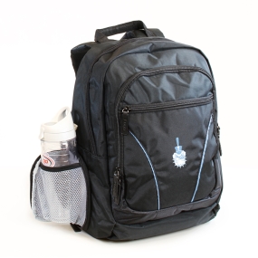 The Citadel Bulldogs Stealth Backpack features rich black fabrics with team colored accent piping. Additional storage area is provided in a large, front zippered pocket, showing the embroidered logo. It features a key clip, one zippered side storage pocket, and another storage pocket with expanding mesh ideal for a water bottle. Main compartment provides ample storage for books in addition to a padded area that will accommodate up to a 17 inch laptop